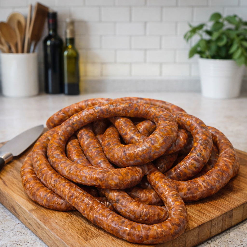 Made using quality lamb and our signature Durban spice blend, this wors is carefully prepared to deliver a rich, aromatic flavour with a gentle kick of heat. Produced in a traditional thinner sheep casing (±26mm), it offers that authentic braai style texture: tender, juicy and perfectly balanced.